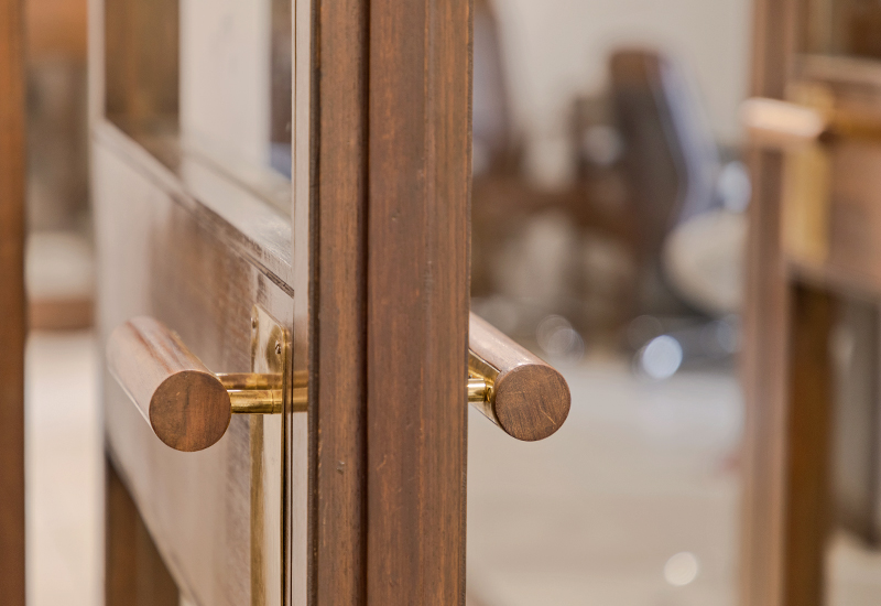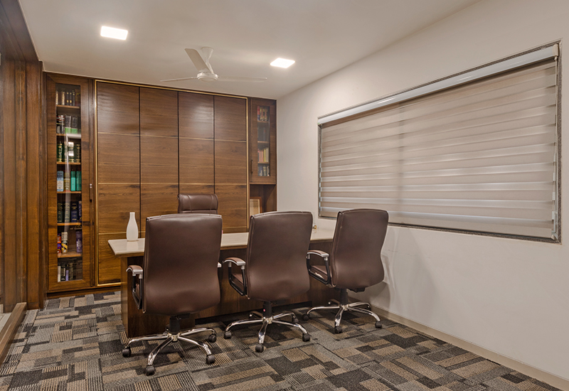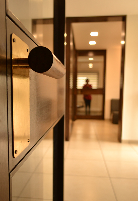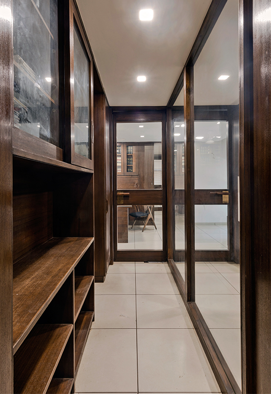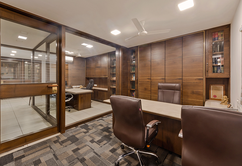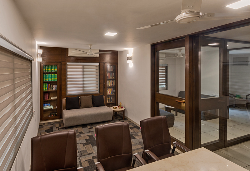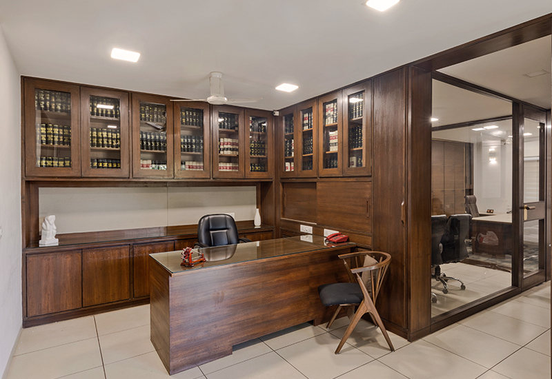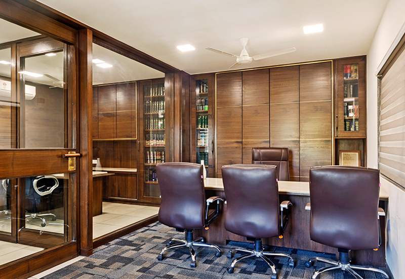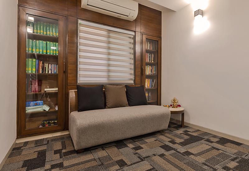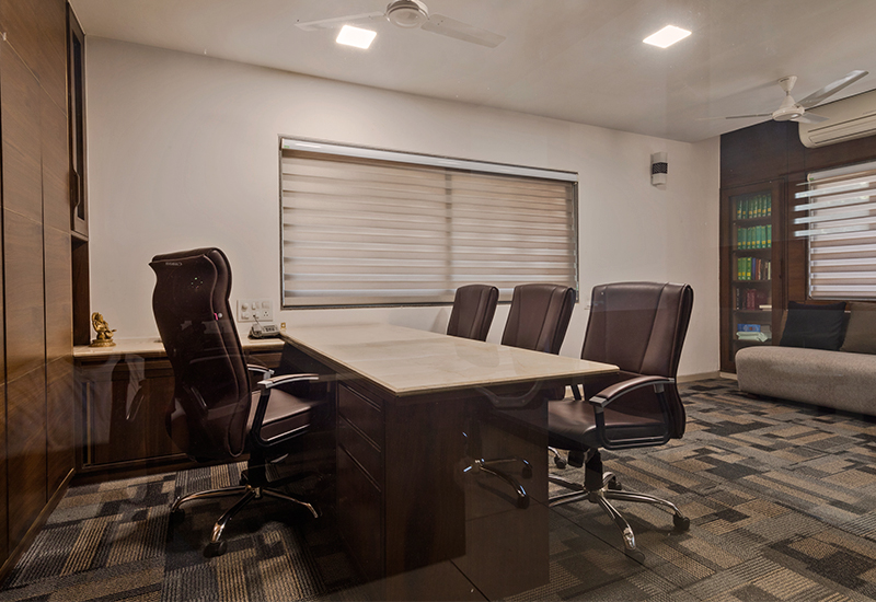 A very famous and busy lawyer of Ahmedabad wanted his office to look big and open we designed the office with a view to making it bigger with its spaces and the different partition details. We never wanted this office to look like a typical lawyer’s office. The handles used in the office have been designed for this project especially.
